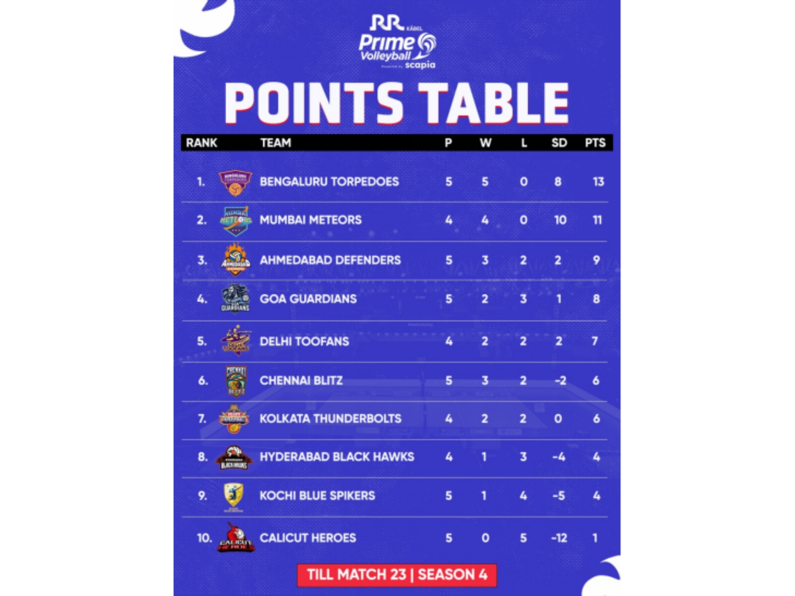 Chennai regained control through Tarun Gowda's powerful super serve, while debutant Azizbek Kuchkorov impressed with key blocks that frustrated Ahmedabad's attackers. Brazilian star Luiz Felipe Perotto also added firepower to Chennai's frontline as the match swung back and forth.