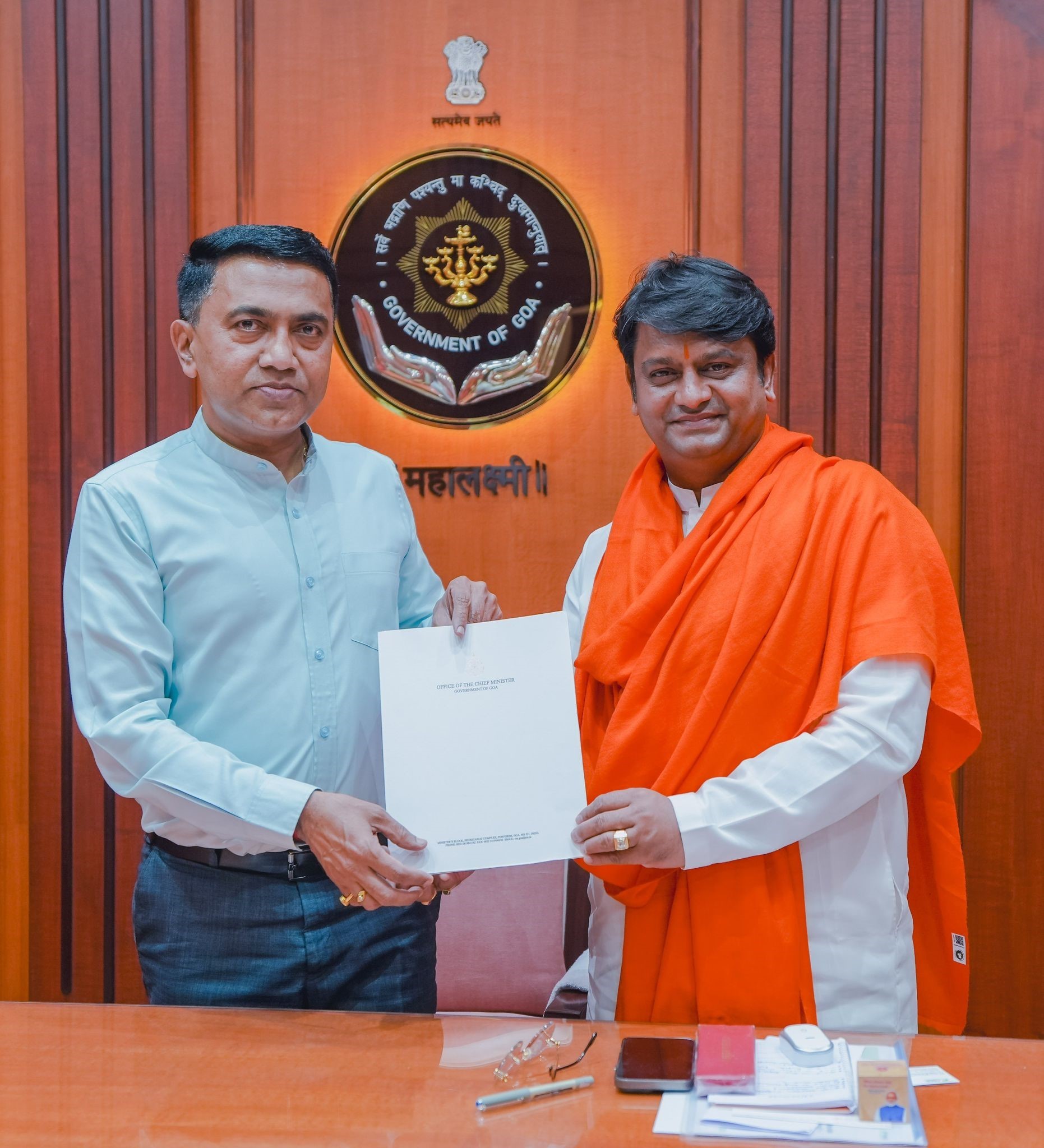 During the meeting, the Hon'ble Chief Minister also presented Guruji with a commemorative publication celebrating Goa's rich temple heritage, symbolising the State's enduring spiritual and cultural legacy.